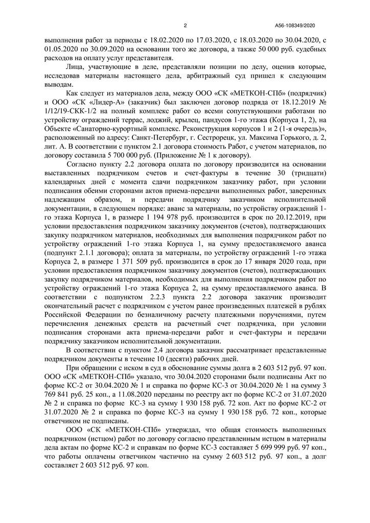 № А56-108349/2020